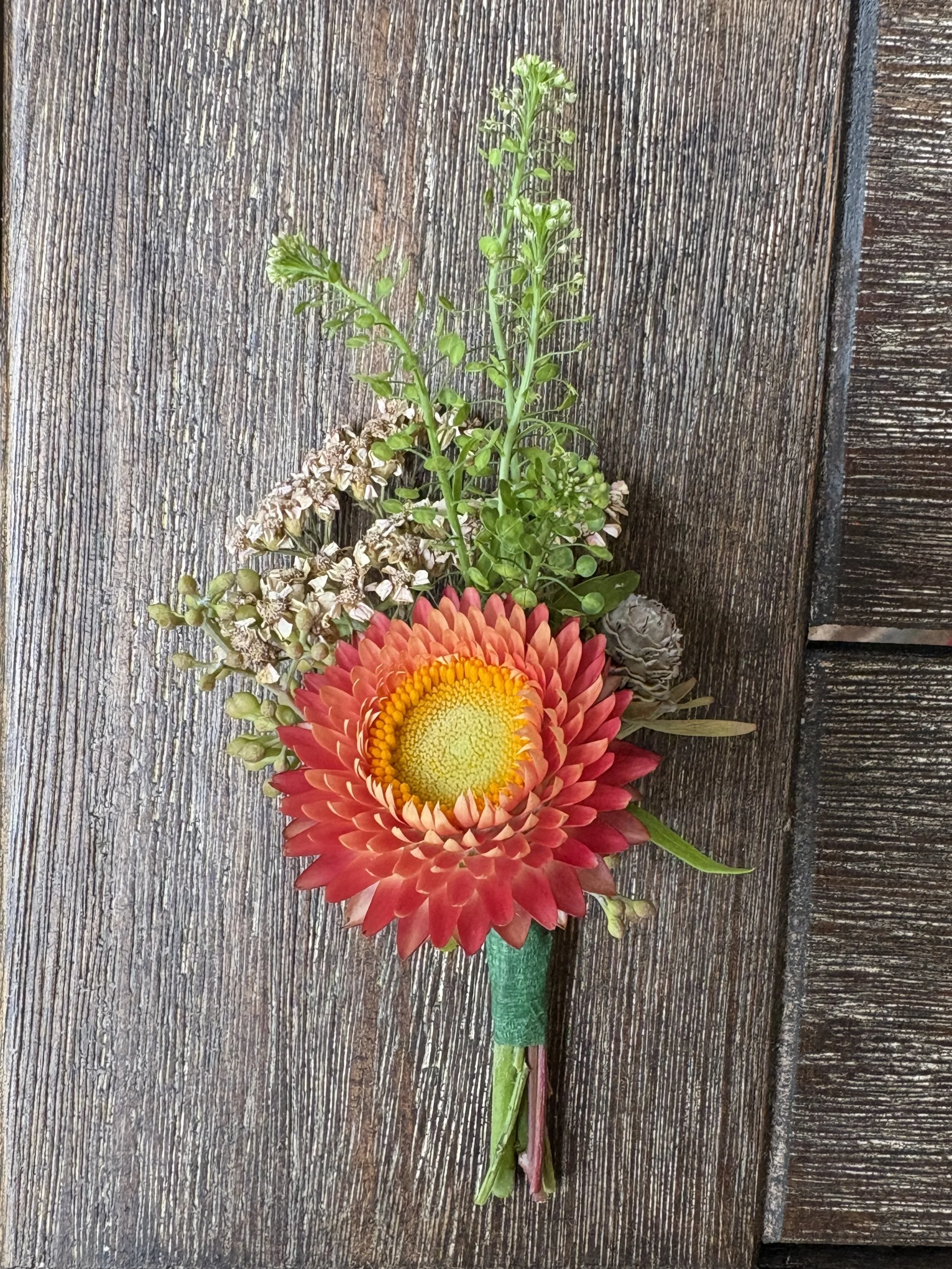 We offer boutonnières, and corsages or handheld bouquets. Click through the gallery below to look at some examples. Bouquets and boutonnières will always be finished with coordinating ribbon.